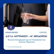 Λουτράκι .. Έκτακτη Ενημέρωση για την Κατάσταση του Δικτύου Ύδρευσης